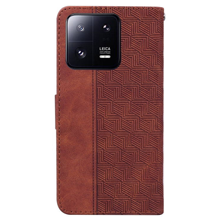 Para Xiaomi 13 Pro Estuche para Teléfono de Cuero con Relieve Geométrico (Marrón)