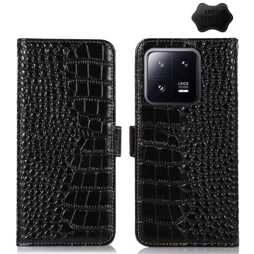 Para Xiaomi 13 Pro Estuche para Teléfono de Cuero de Vaca con Capa Superior de Cocodrilo (Negro)