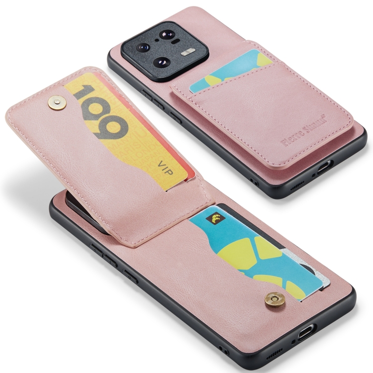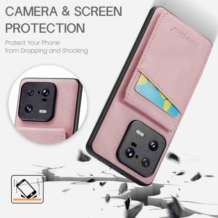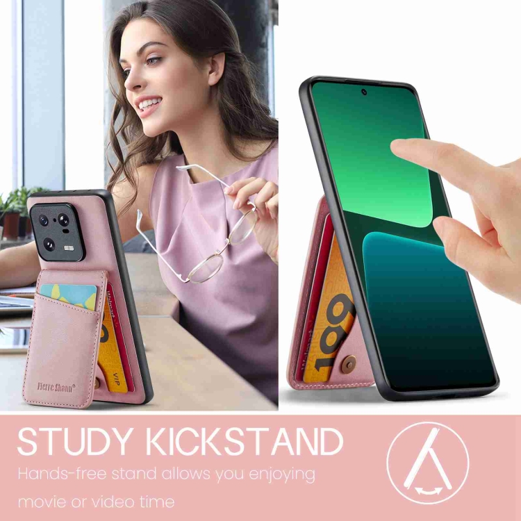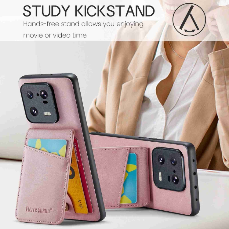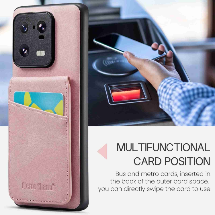 Para Xiaomi 13 Pro Fierre Shann Crazy Horse TaRJetero Contraportada Pu Funda para Teléfono (Rosa)