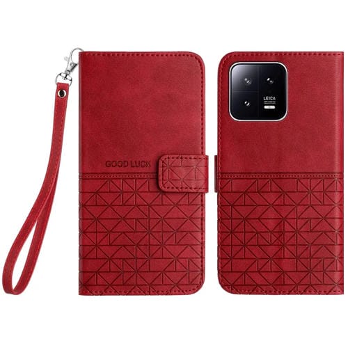 Para Xiaomi 13 Pro Funda de Cuero con Textura Rómbica y Cordón (Rojo)