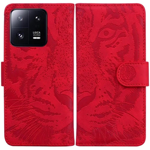 Para Xiaomi 13 Pro Funda de Teléfono de Cuero con Estampado de Tigre En Relieve (Rojo)