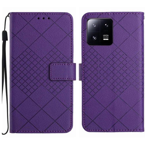 Para Xiaomi 13 Pro Funda de Teléfono de Cuero con Textura de Rejilla Rómbica (Púrpura)