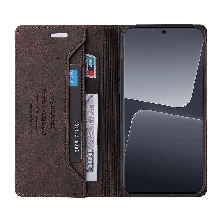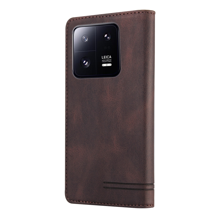 Para Xiaomi 13 Pro Gqutrobe Skin Feel Cepillo Antirrobo Funda de Cuero con Tapa Horizontal con Soporte (Marrón)