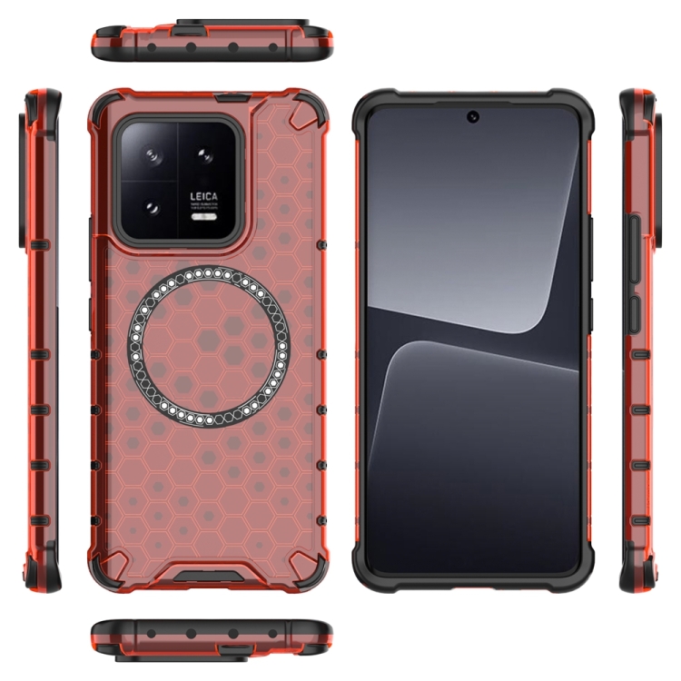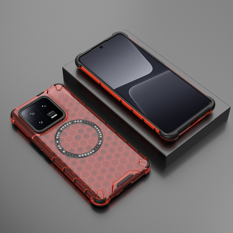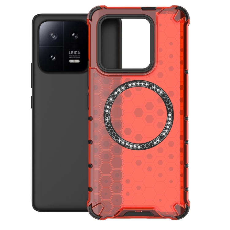 Para Xiaomi 13 Pro Honeycomb Magnetic Ring Funda para Teléfono a Prueba de Golpes (Rojo)