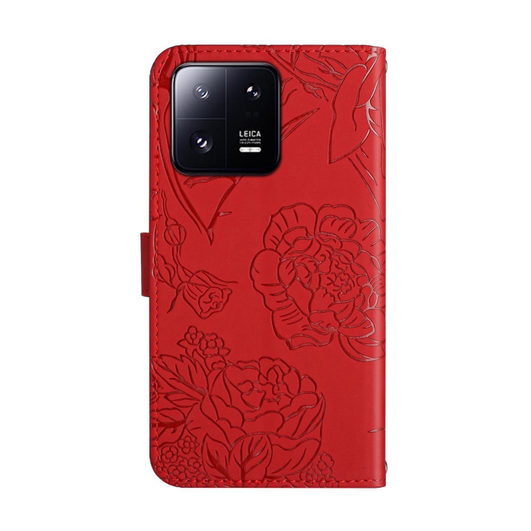 Para Xiaomi 13 Pro Ht03 Skin Feel Butterfly Funda de Cuero con Tapa En Relieve para Teléfono (Rojo)