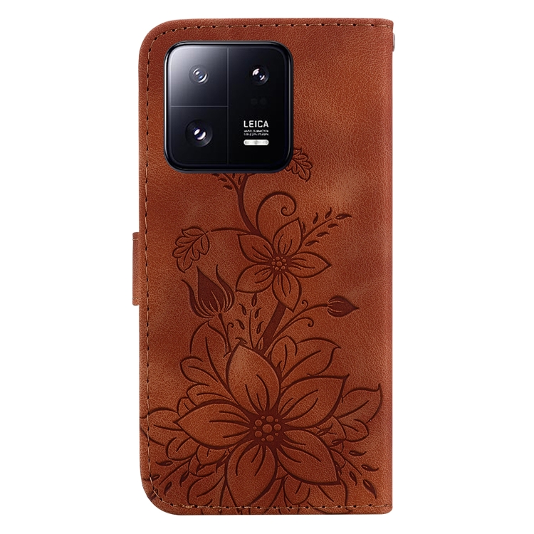 Para Xiaomi 13 Pro Lily Funda de Cuero En Relieve para Teléfono (Marrón)