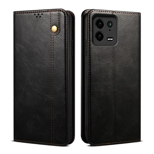 Para Xiaomi 13 Pro Oil Wax Crazy Horse Texture Funda de Cuero para Teléfono (Negro)