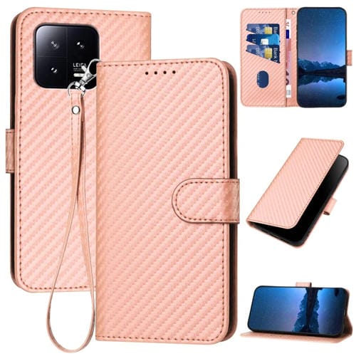 Para Xiaomi 13 Yx0070 Funda de Cuero con Hebilla de Fibra de Carbono y Cordón (Rosa)