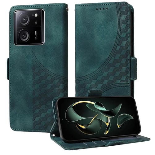 Para Xiaomi 13T / 13T Pro Funda de Teléfono de Cuero Estrellado con Rombos En Relieve (Verde)