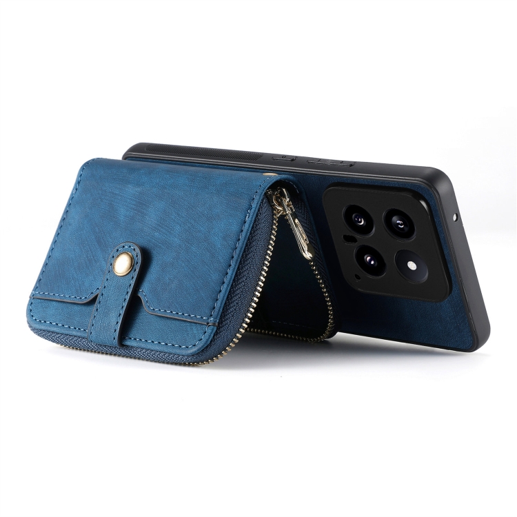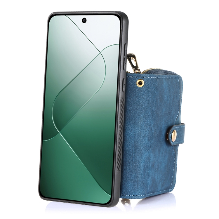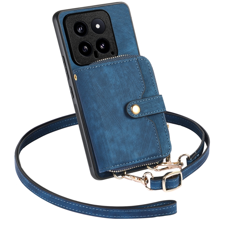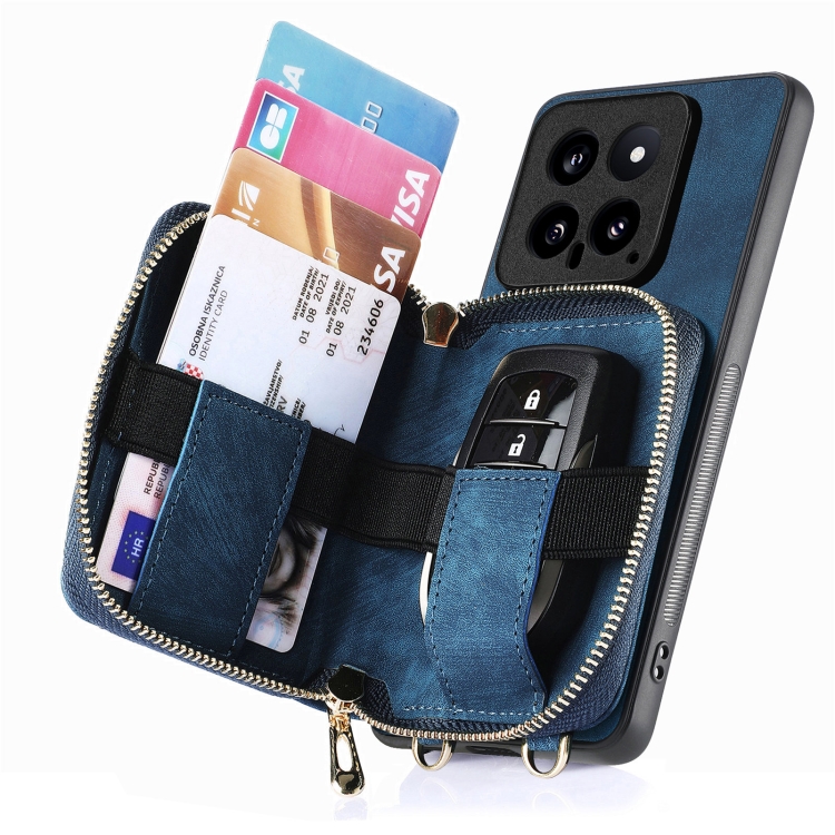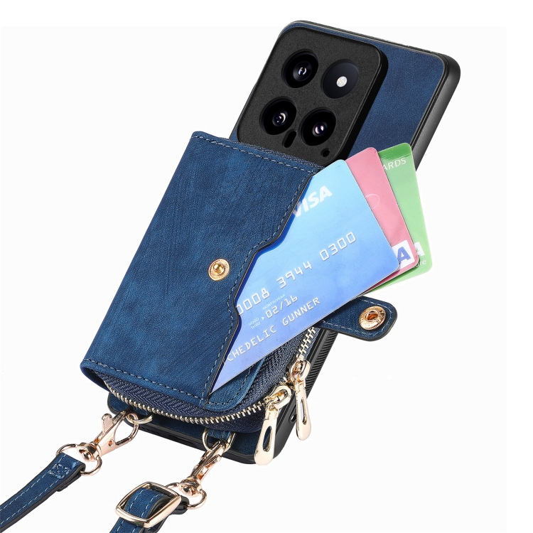 Para Xiaomi 14 Crossbody Funda Para Teléfono Con Billetera Con Cremallera Multifunción (Azul)