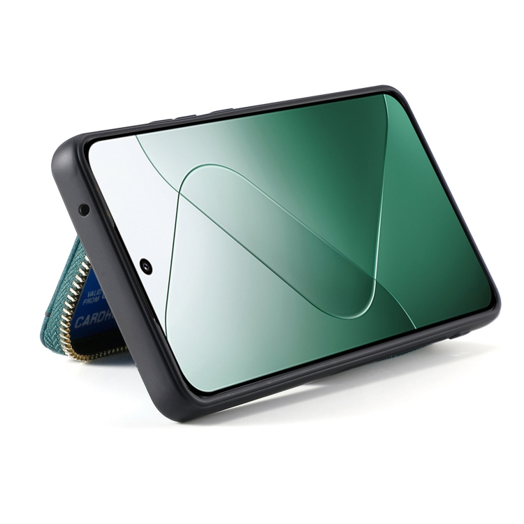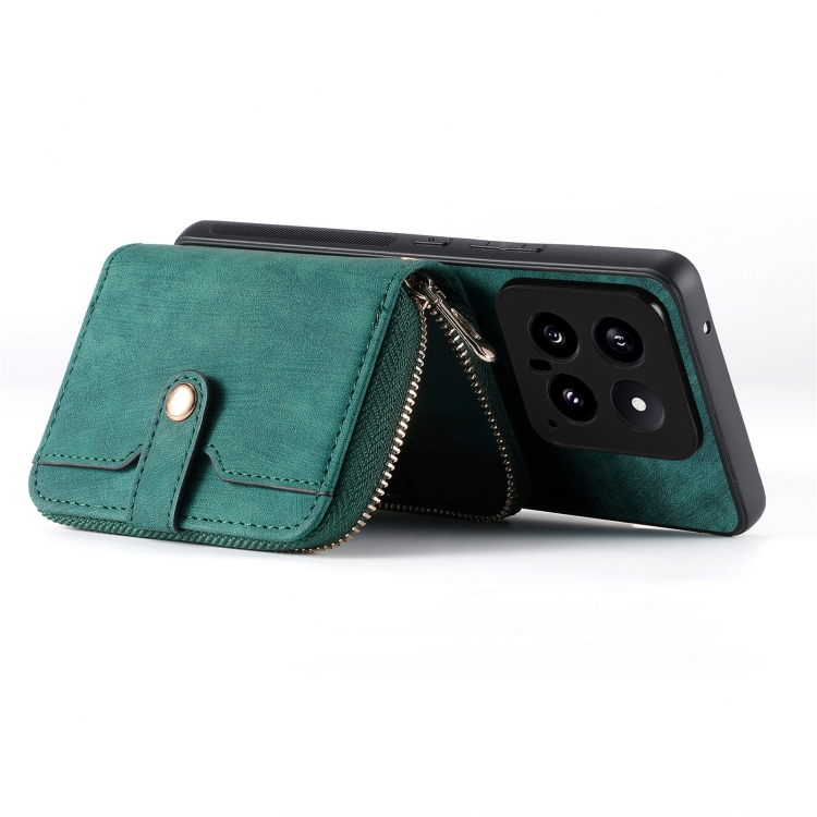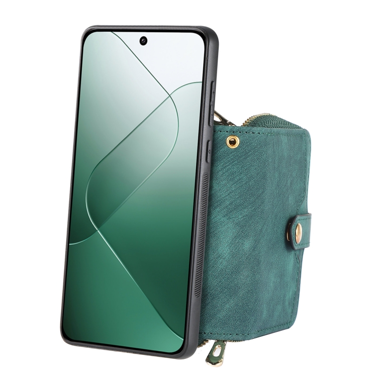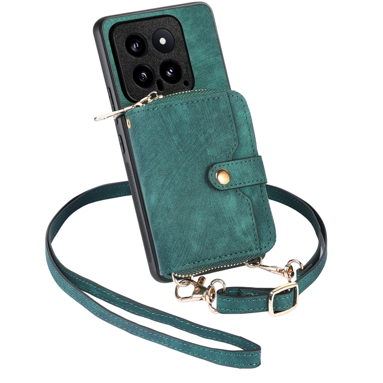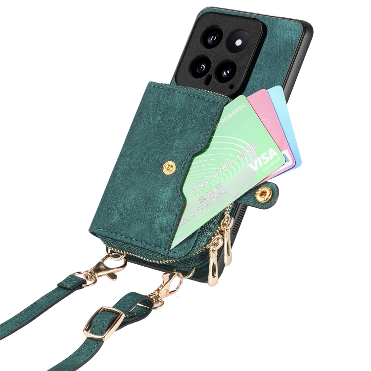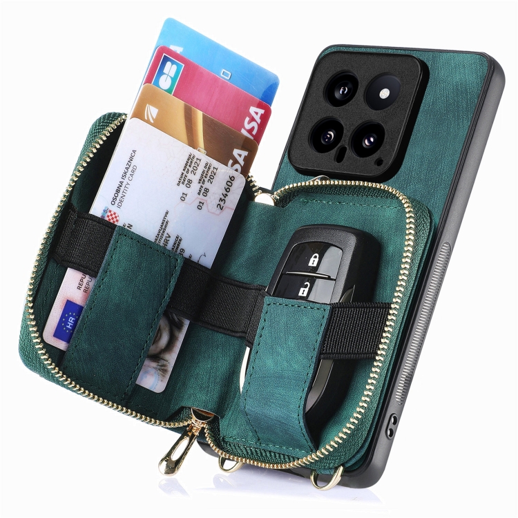 Para Xiaomi 14 Crossbody Funda Para Teléfono Con Billetera Con Cremallera Multifunción (Verde)