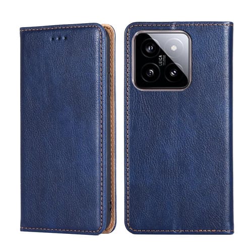 Para Xiaomi 14 Estuche Para Teléfono De Cuero Magnético De Color Sólido Con Aceite Brillante (Azul)
