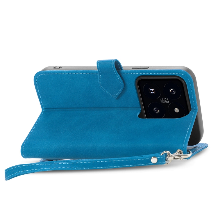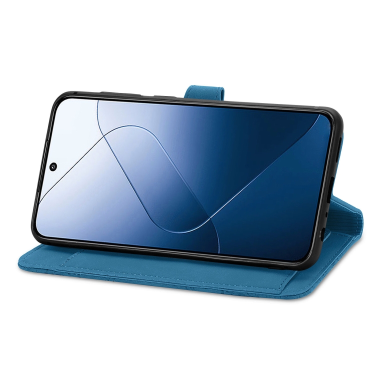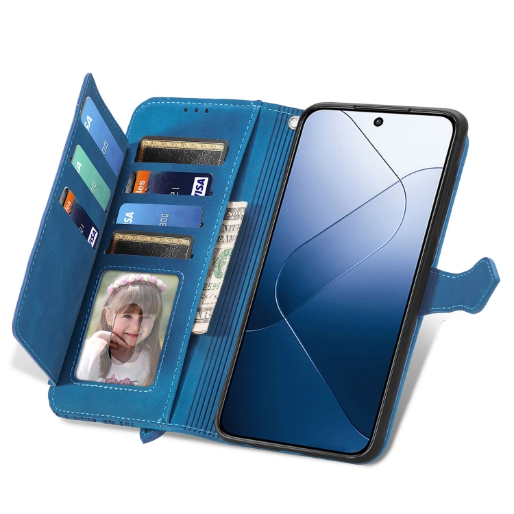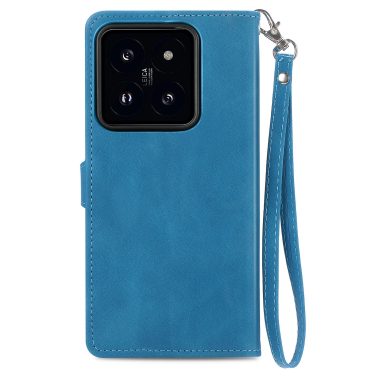 Para Xiaomi 14 Funda De Cuero Con Cremallera Y Flores En Relieve (Azul)