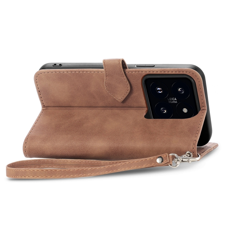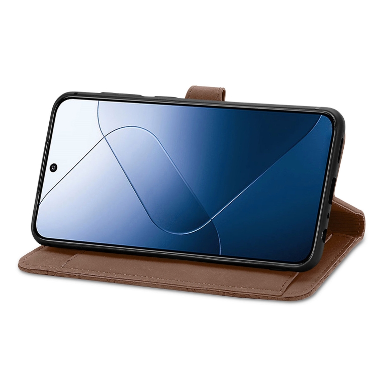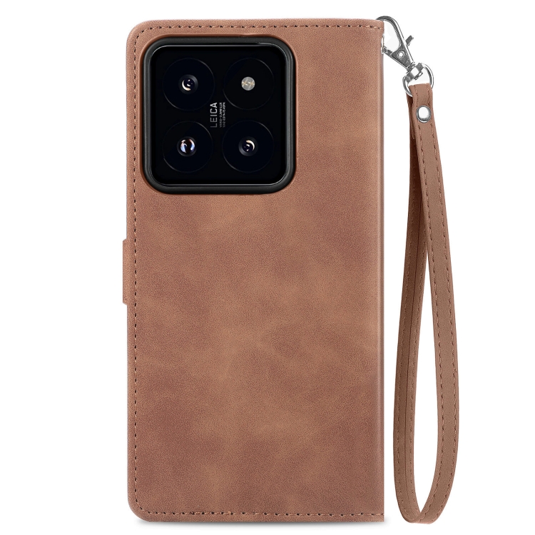 Para Xiaomi 14 Funda De Cuero Con Cremallera Y Flores En Relieve (Marrón)