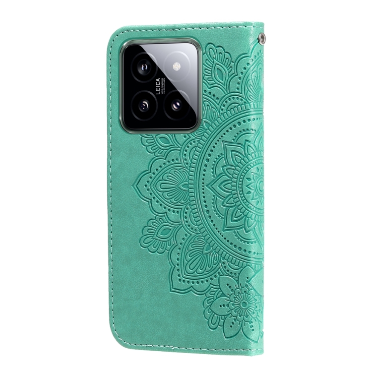 Para Xiaomi 14 Funda De Cuero Con Estampado De Flores De 7 Pétalos (Verde)