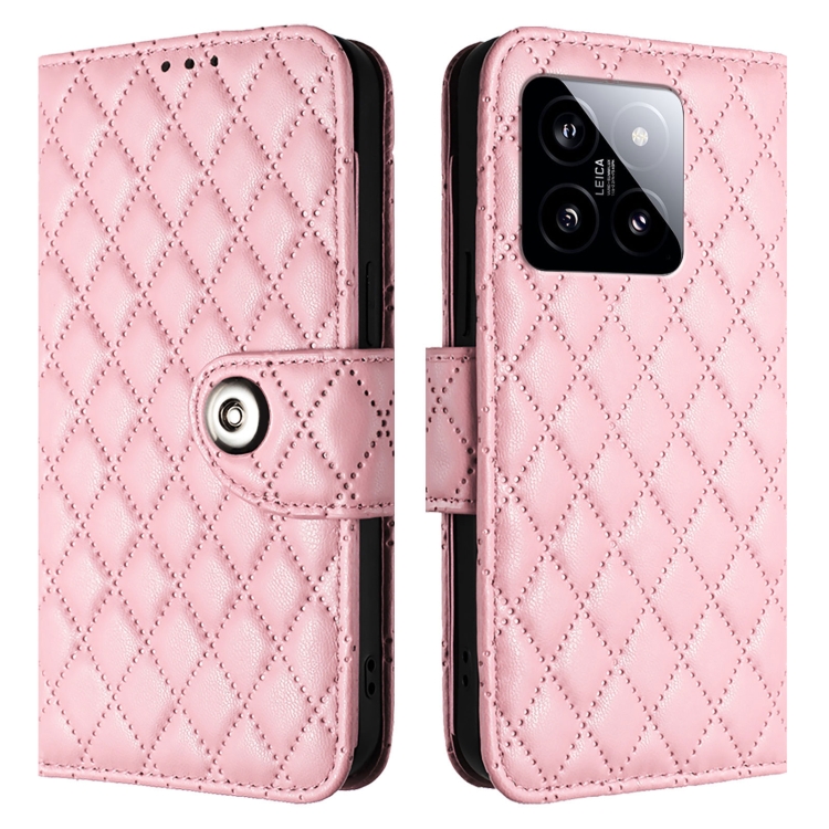 Para Xiaomi 14 Funda De Cuero Con Tapa Con Textura Rómbica Y Cordón (Rosa)