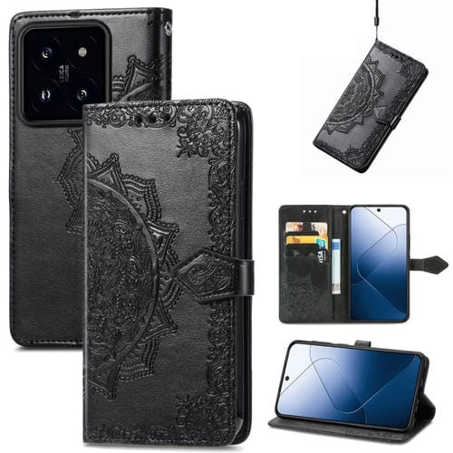 Para Xiaomi 14 Funda De Teléfono De Cuero Con Relieve De Flor De Mandala (Negro)
