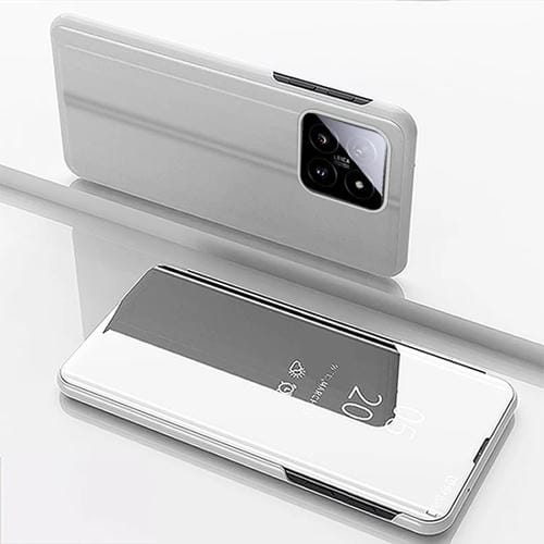 Para Xiaomi 14 Funda De Teléfono De Cuero Con Tapa Horizontal Con Espejo Plateado Y Soporte (Plateado)