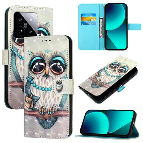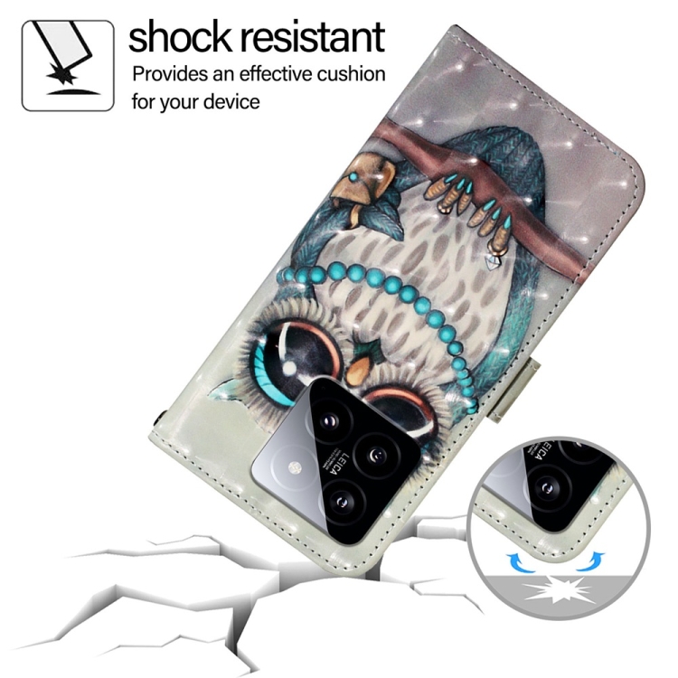 Para Xiaomi 14 Funda De Teléfono De Cuero Con Tapa Horizontal Con Pintura 3D (Búho Gris)