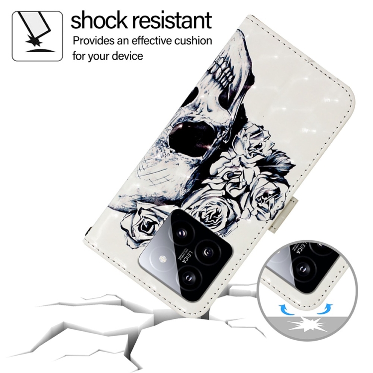 Para Xiaomi 14 Funda De Teléfono De Cuero Con Tapa Horizontal Con Pintura 3D (Calavera)