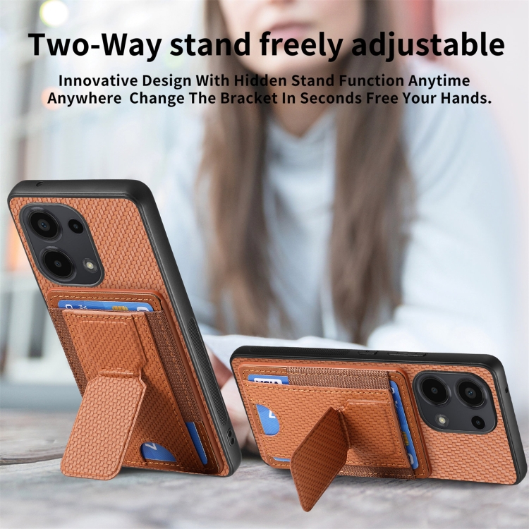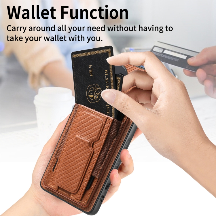 Para Xiaomi 14 Funda Plegable Para Teléfono Con Bolsa Para Tarjeta Elástica Con Soporte Plegable De Fibra De Carbono (Marrón)