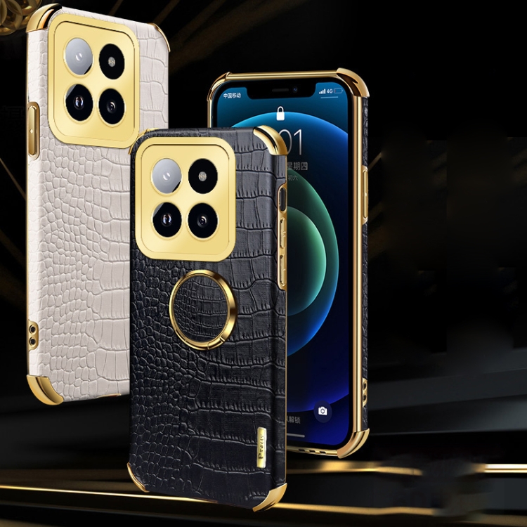Para Xiaomi 14 Pro 6D Funda Trasera De Cuero Con Textura De Cocodrilo Galvanizada Y Soporte (Negro)