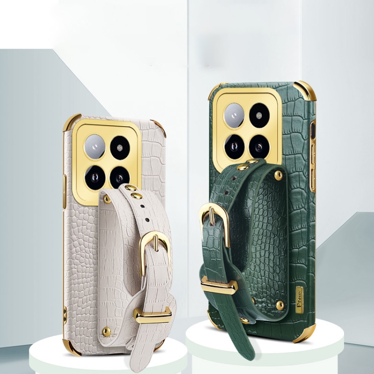 Para Xiaomi 14 Pro Correa De Muñeca Galvanizada Funda Trasera De Cuero De Cocodrilo (Amarillo)