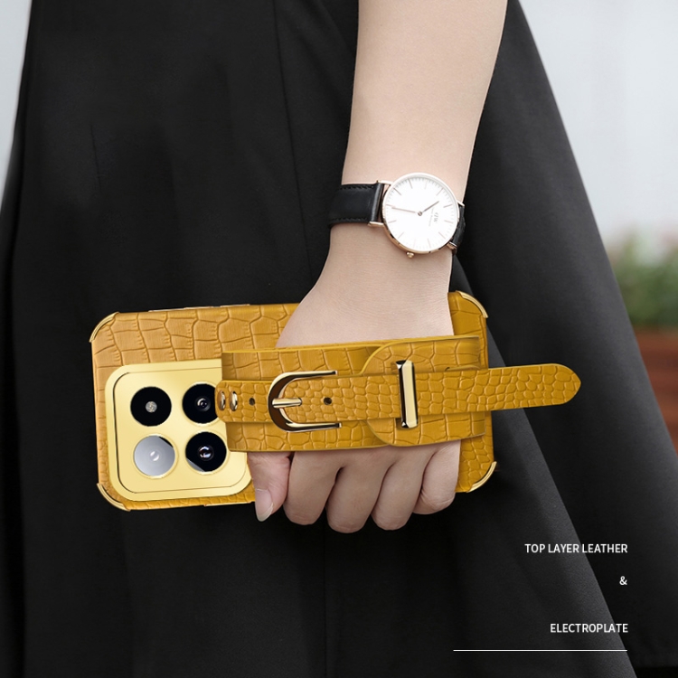 Para Xiaomi 14 Pro Correa De Muñeca Galvanizada Funda Trasera De Cuero De Cocodrilo (Negro)