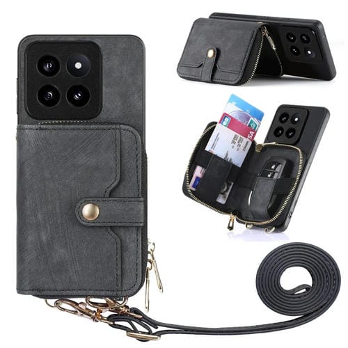 Para Xiaomi 14 Pro Crossbody Funda Para Teléfono Con Billetera Con Cremallera Multifunción (Negro)