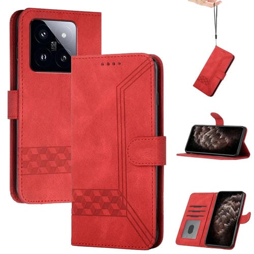 Para Xiaomi 14 Pro Cubic Skin Feel Funda De Cuero Con Tapa Para Teléfono (Rojo)