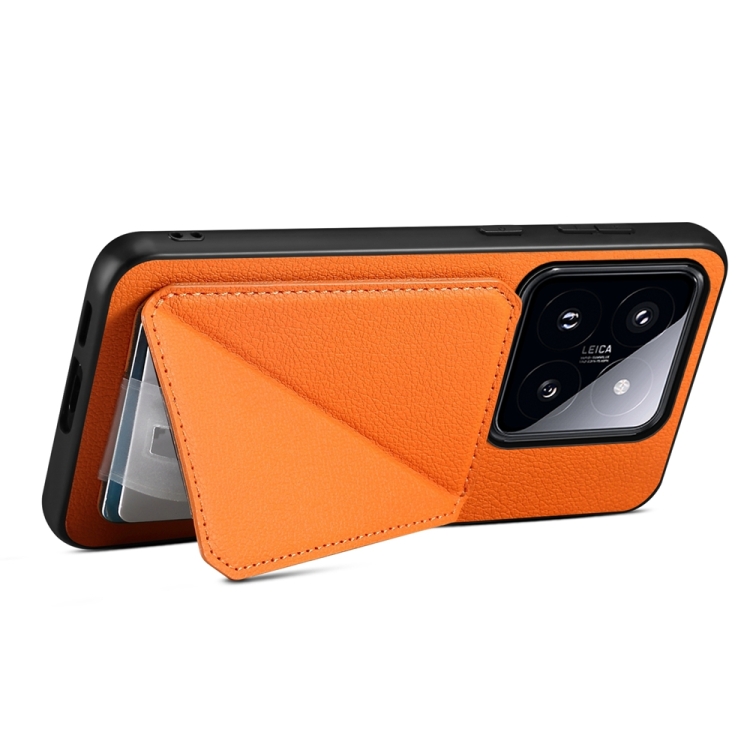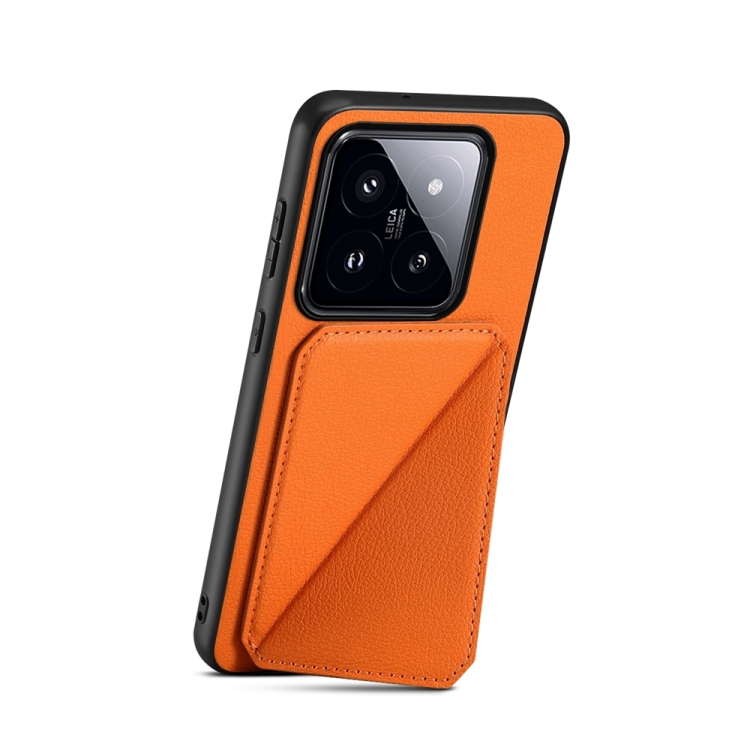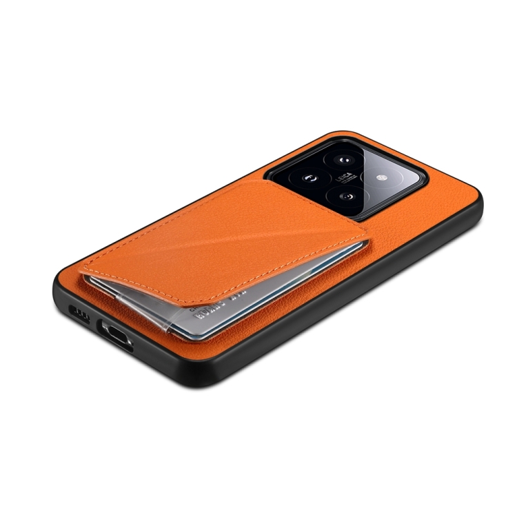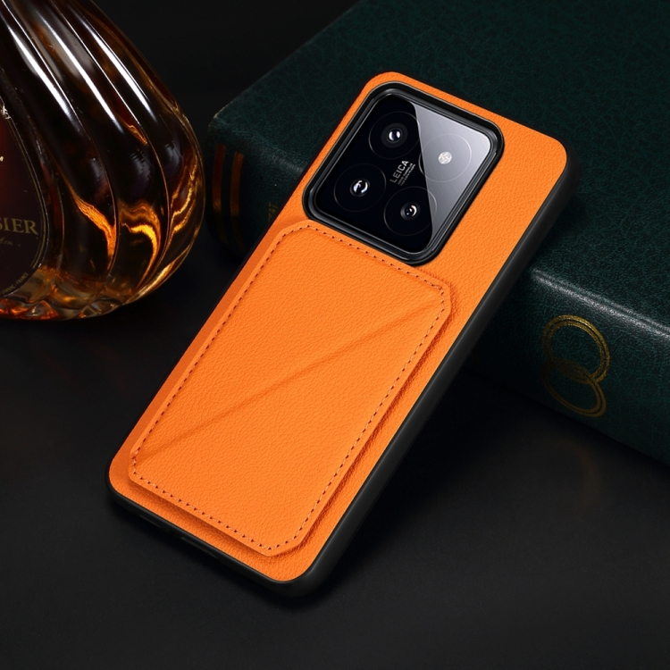 Para Xiaomi 14 Pro D04 Funda Para Teléfono Con Soporte Para Ranura Para Tarjeta Dual Con Textura De Pantorrilla (Naranja)