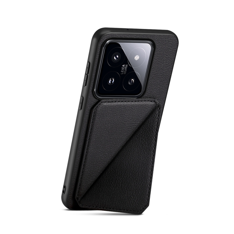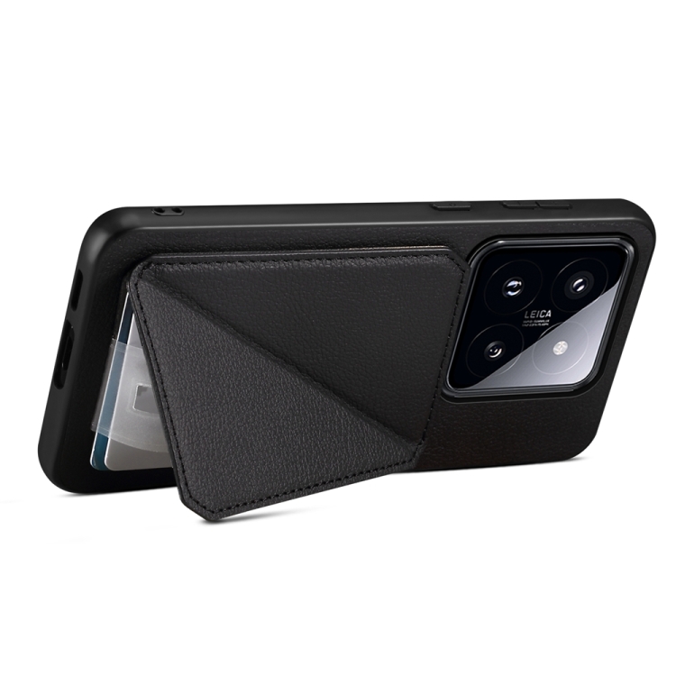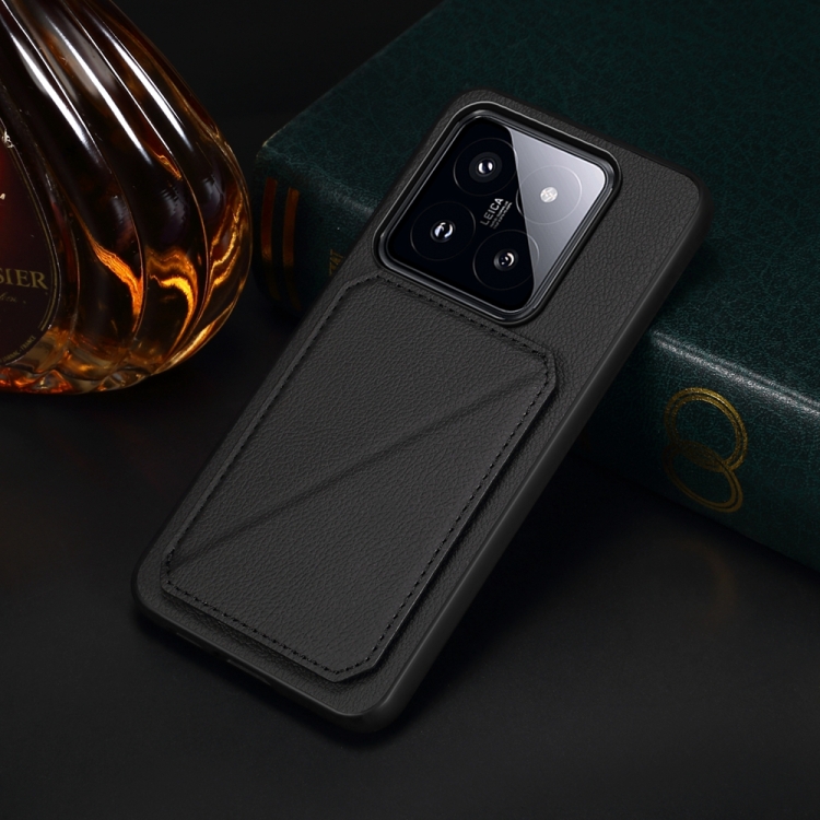 Para Xiaomi 14 Pro D04 Funda Para Teléfono Con Soporte Para Ranura Para Tarjeta Dual Con Textura De Pantorrilla (Negro)