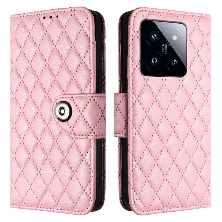 Para Xiaomi 14 Pro Funda De Cuero Con Tapa Con Textura Rómbica Y Cordón (Rosa)