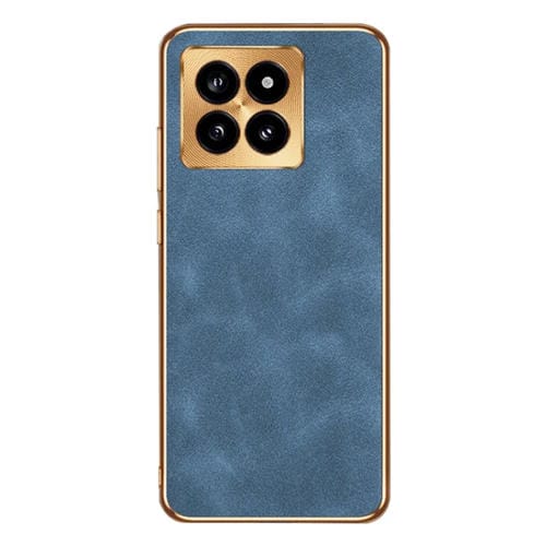 Para Xiaomi 14 Pro Funda De Cuero De Piel De Cordero Galvanizada (Azul)