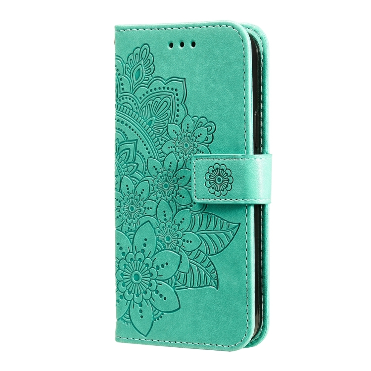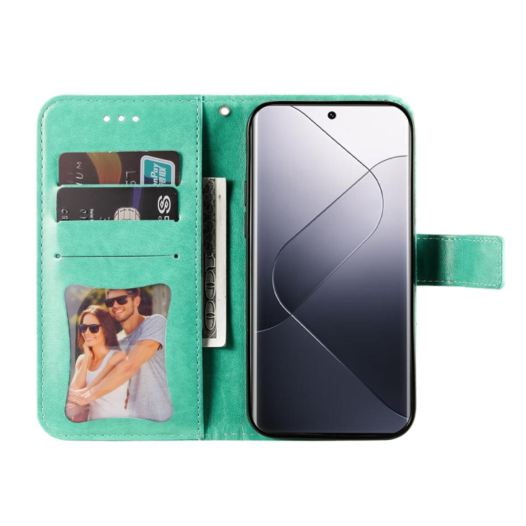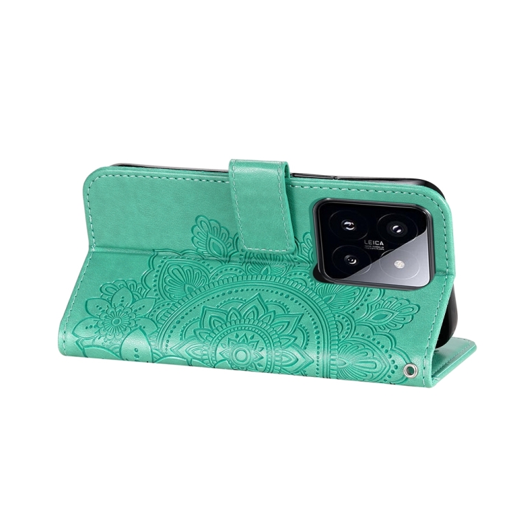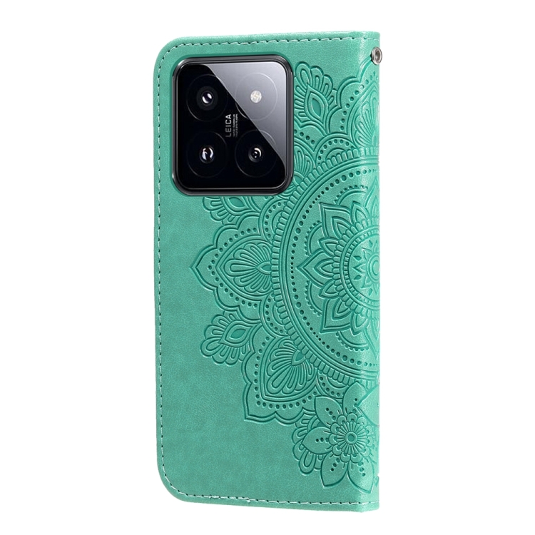 Para Xiaomi 14 Pro Funda De Teléfono De Cuero Con Estampado De Flores De 7 Pétalos (Verde)