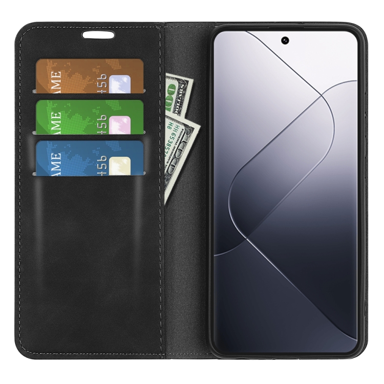 Para Xiaomi 14 Pro Funda De Teléfono De Cuero Con Succión Magnética De Piel Retro (Negro)