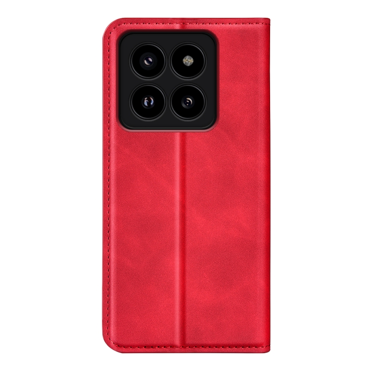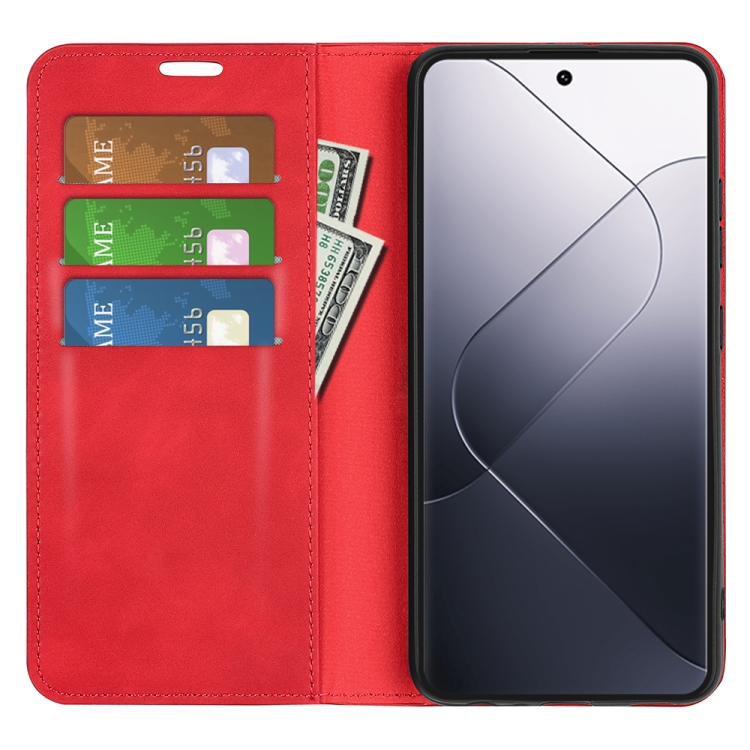 Para Xiaomi 14 Pro Funda De Teléfono De Cuero Con Succión Magnética De Piel Retro (Rojo)