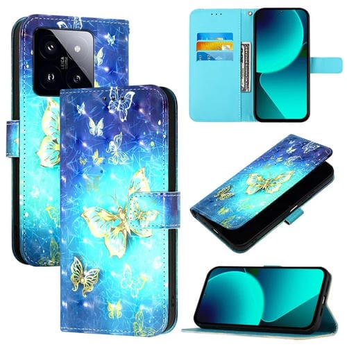 Para Xiaomi 14 Pro Funda De Teléfono De Cuero Con Tapa Horizontal Con Pintura 3D (Mariposa Dorada)