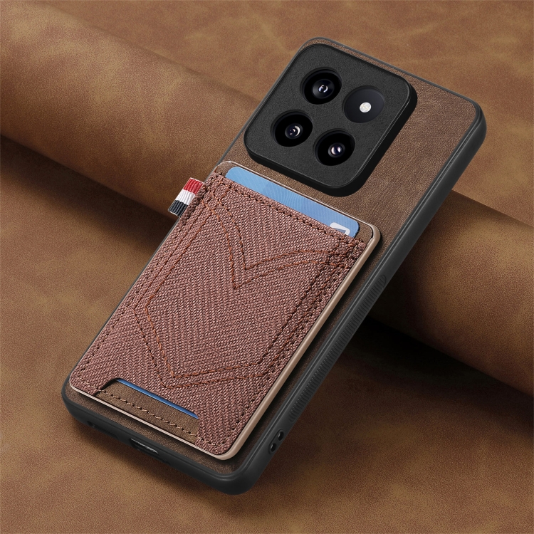Para Xiaomi 14 Pro Funda Para Teléfono Con Piel De Cuero Con Textura Vaquera Y Ranura Para Tarjeta (Marrón)
