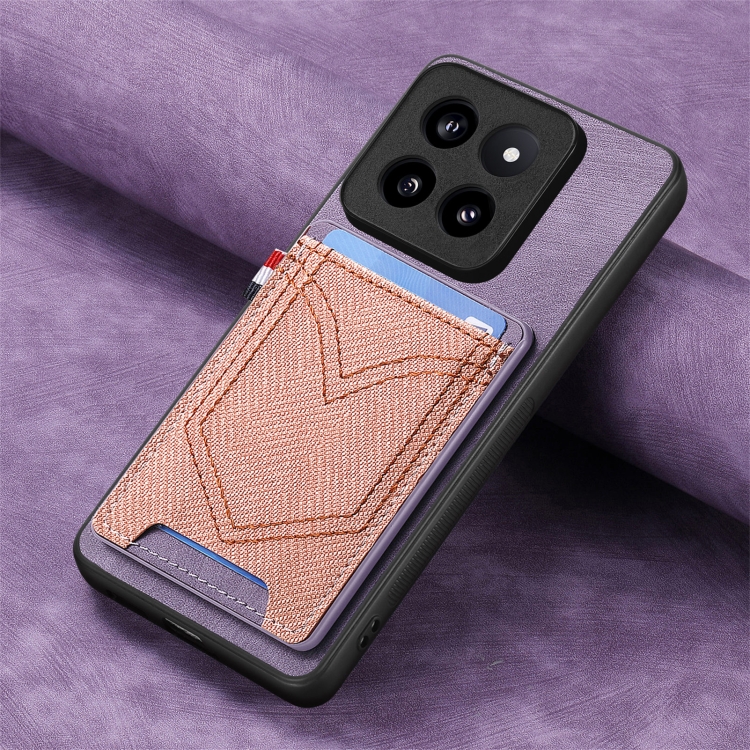 Para Xiaomi 14 Pro Funda Para Teléfono Con Piel De Cuero Con Textura Vaquera Y Ranura Para Tarjeta (Púrpura)