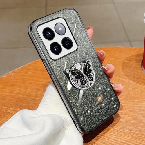 Para Xiaomi 14 Pro Funda Para Teléfono De Tpu Con Soporte De Mariposa Con Brillo Degradado Plateado (Negro)