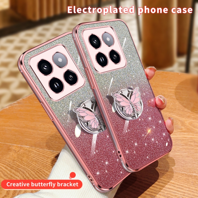 Para Xiaomi 14 Pro Funda Para Teléfono De Tpu Con Soporte De Mariposa Con Brillo Degradado Plateado (Rosa)