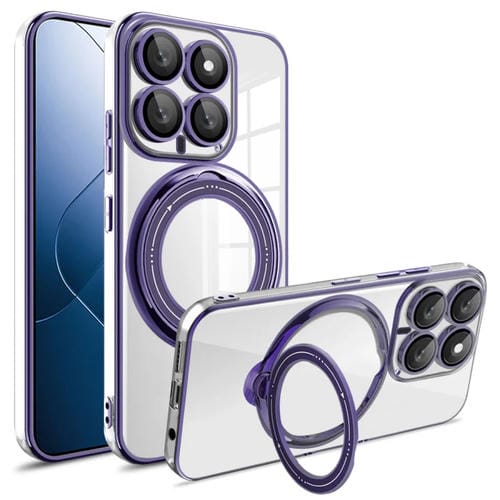 Para Xiaomi 14 Pro Galvanoplastia Magsafe Soporte De Rotación De 360 Grados Estuche Para Teléfono A Prueba De Golpes (Púrpura Oscuro)