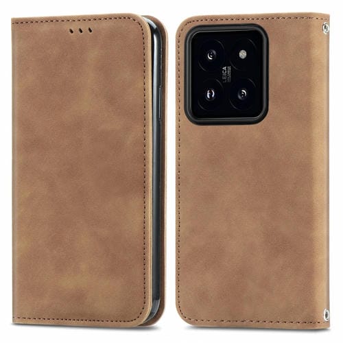 Para Xiaomi 14 Pro Retro Skin Feel Funda De Teléfono De Cuero Con Tapa Magnética (Marrón)
