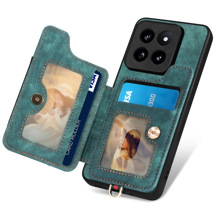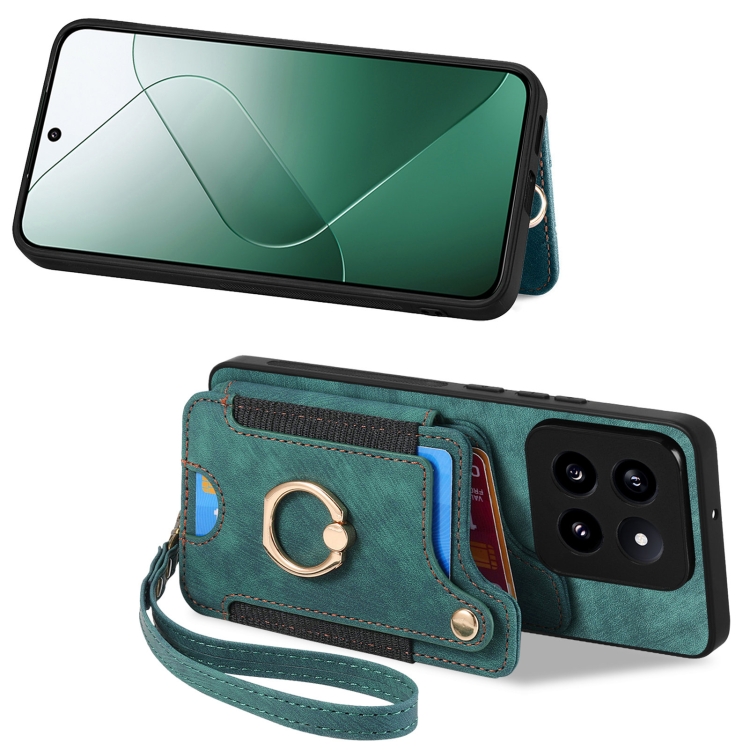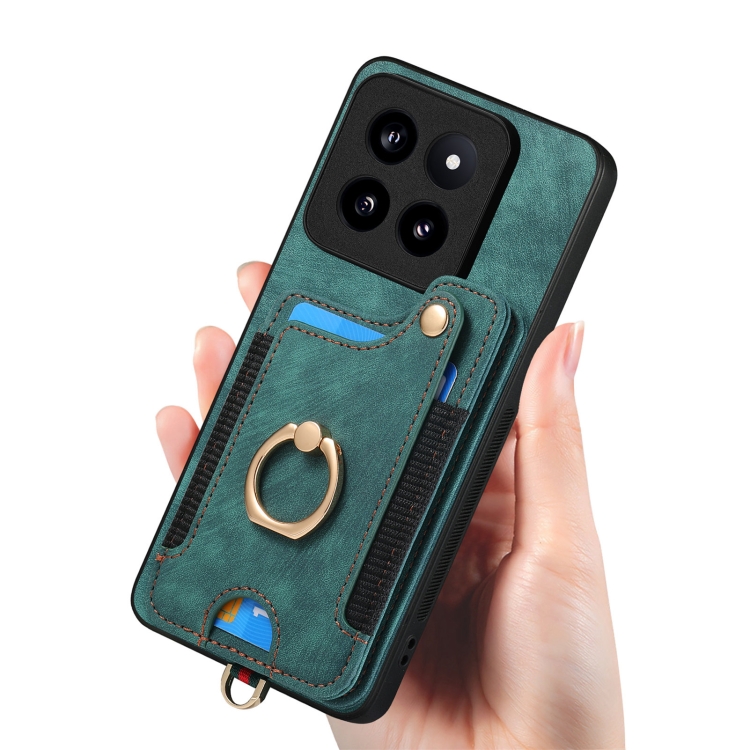 Para Xiaomi 14 Pro Retro Skin-Feel Ring Funda Para Teléfono Con Billetera Rfid Con Múltiples Tarjetas (Verde)
