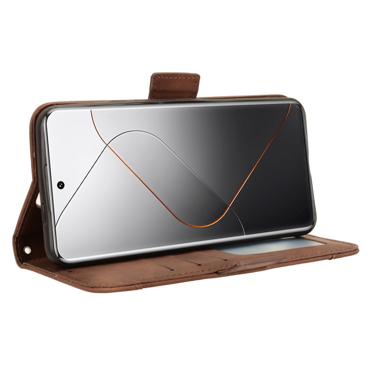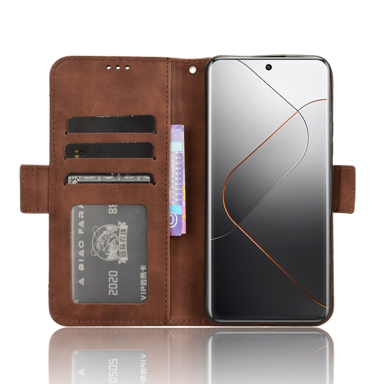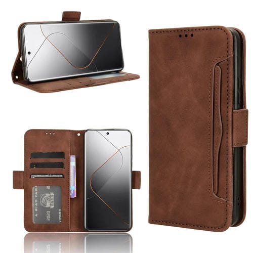 Para Xiaomi 14 Pro Skin Feel Becerro Textura Ranuras Para Tarjetas Funda De Cuero Para Teléfono (Marrón)