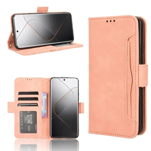 Para Xiaomi 14 Pro Skin Feel Becerro Textura Ranuras Para Tarjetas Funda De Cuero Para Teléfono (Rosa)