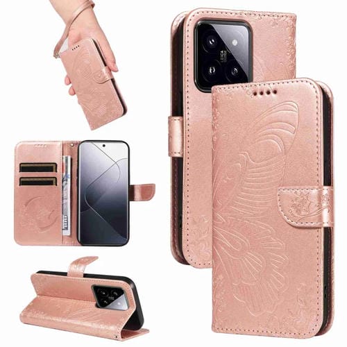 Para Xiaomi 14 Pro Swallowtail Butterfly Funda De Cuero En Relieve Para Teléfono (Oro Rosa)