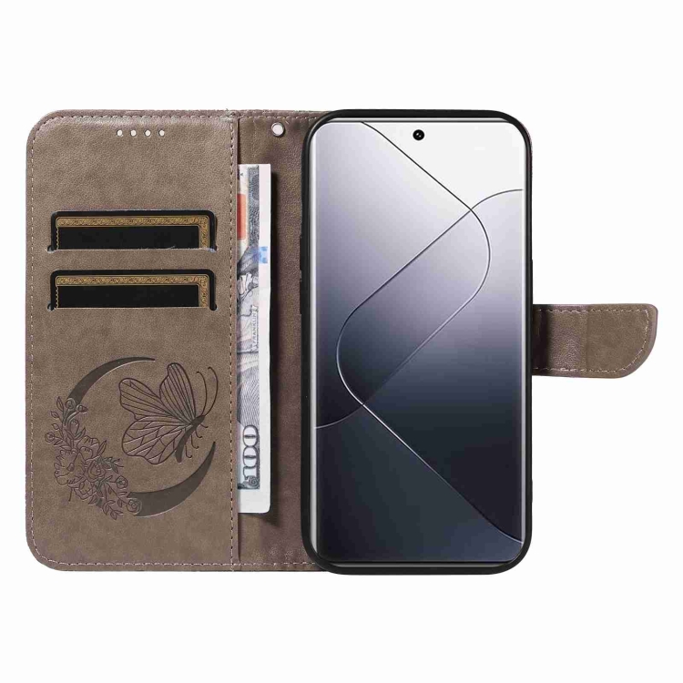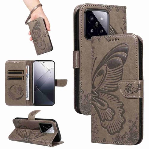 Para Xiaomi 14 Pro Swallowtail Butterfly Funda De Cuero Para Teléfono En Relieve (Gris)