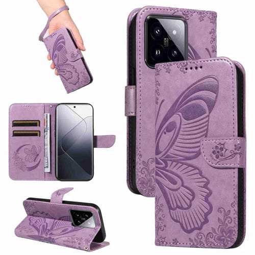 Para Xiaomi 14 Pro Swallowtail Butterfly Funda De Cuero Para Teléfono En Relieve (Púrpura)